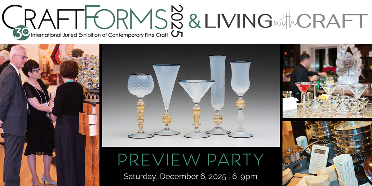 Join the CraftForms and Living with Craft artists, juror, sponsors and other art enthusiasts for a first look at CraftForms 2025 during an exciting evening of fine art, delicious hors d’oeuvres, open bar and live music. Juror Bruce W. Pepich will award $10,000 in cash prizes to CraftForms’ top winners during the evening’s award ceremony.