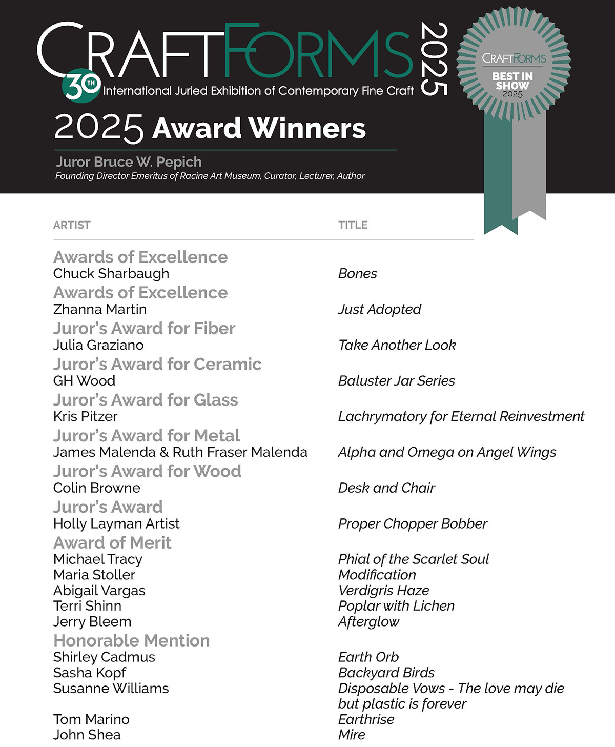 CraftForms 2025, 30th International Juried Exhibition of Contemporary Fine Craft