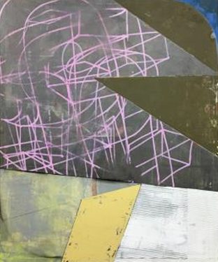 While studying design in this early years at college, Stephen explored different ways of using script and text in his work, while maintaining an interest in traditional mediums of collage and assemblage. He started exploring these mediums more and started painting as a departure from the intensive computer work that comes with studying graphic arts. The idea to combine the formal and geometric aspects with the raw emotion and energy in painting and graffiti started to take shape. Layering with discarded print items brought an elated feeling that better expressed his interest.